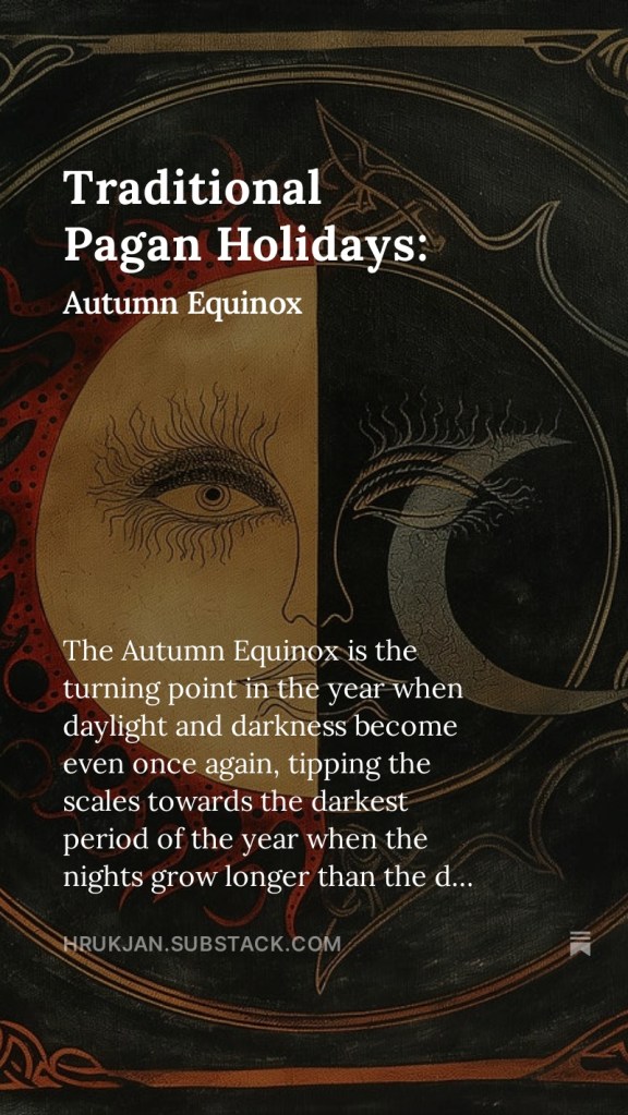 Traditional Pagan Holidays: Autumn Equinox New article on Substack. Share this: Click to share on X (Opens in new window) X Click to share on Facebook (Opens in new window) Facebook Like Loading... Leave a comment Cancel reply Δ